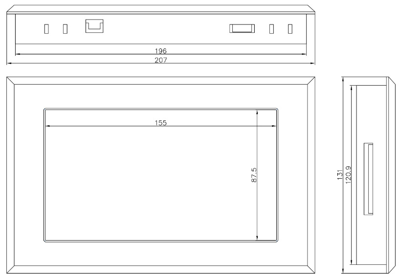 LCD視窗尺寸:156.4×88.8(單位mm)