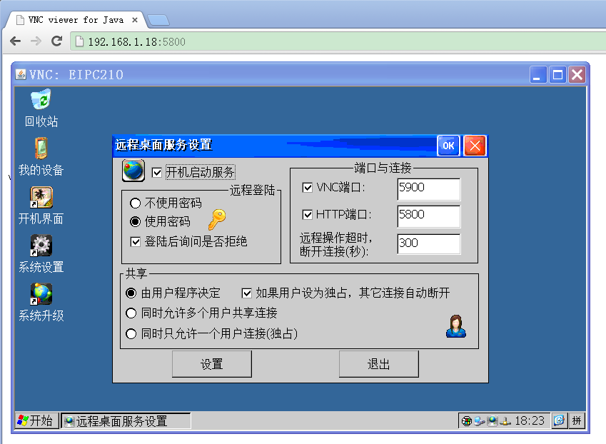 支持VNC遠(yuǎn)程桌面服務(wù),遠(yuǎn)程端可通過(guò)VNC工具或者HTTP網(wǎng)頁(yè)遠(yuǎn)程控制EIPC970,可設(shè)置密碼;
